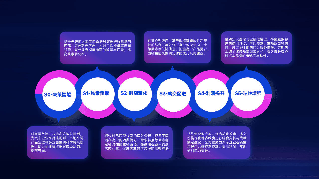 通过拓宽潜在客户来源、、优化线索分配并提高到店转化率,,,以增强销售效率。。同时,,利用线索数据不断优化分析模型,,有效提升转化率,,,扩大营销影响力。。。